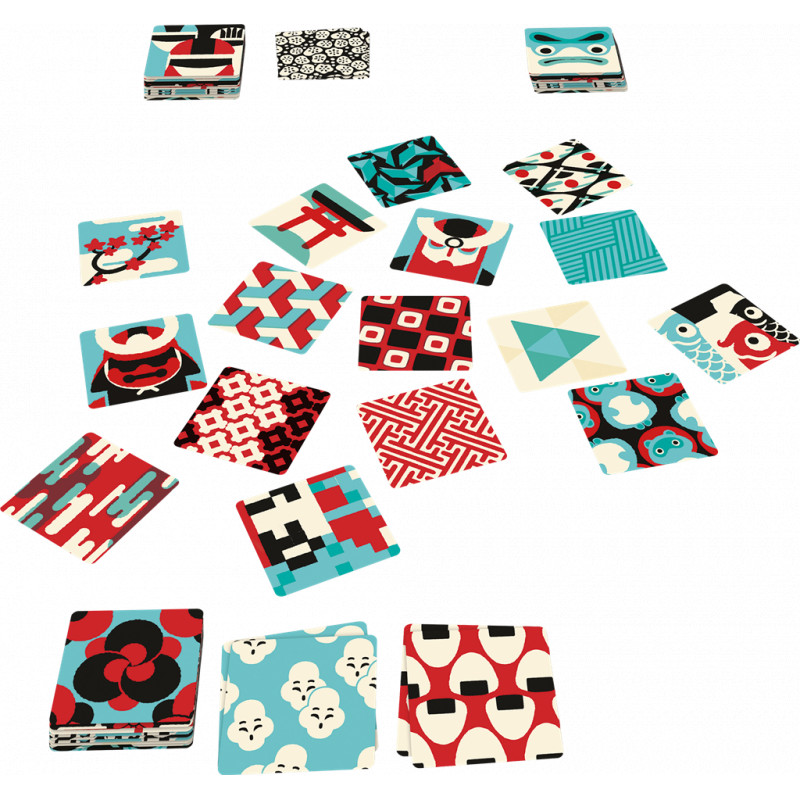 Retrouvez le plus vite possible les motifs identiques entre deux cartes de cette mosaïque, tous inspirés du Pays du Soleil Levant, pour gagner la partie !