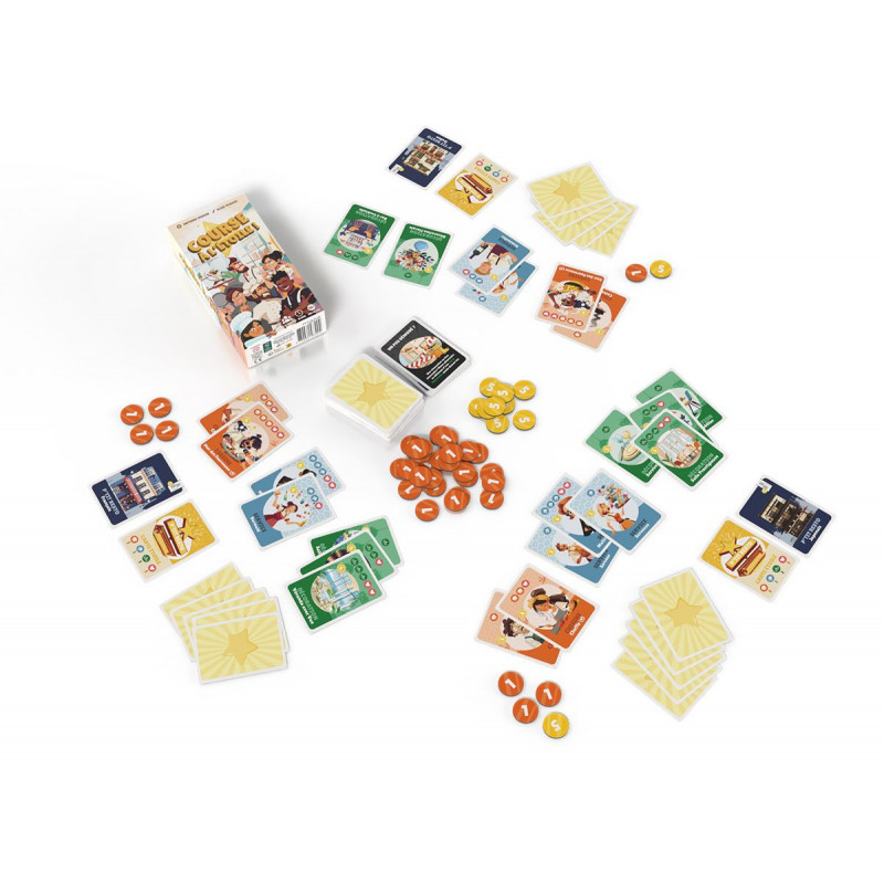 Dans Course à l'Étoile, votre objectif est simple : transformer votre modeste restaurant en un établissement étoilé. Pour cela, vous devez enrichir votre menu avec des plats savoureux, embellir vos locaux avec une décoration soignée et recruter une équipe talentueuse pour assurer un service impeccable. À la fin de chaque tour, vous gagnez de l’argent en fonction des plats servis dans votre établissement. Ce capital vous permettra d’investir, au tour suivant, dans de nouveaux éléments pour faire prospérer votre restaurant. Le premier joueur à remplir les conditions de sa Carte Étoile remporte la partie.