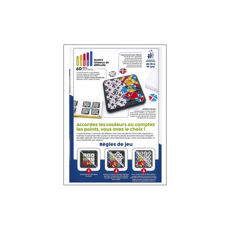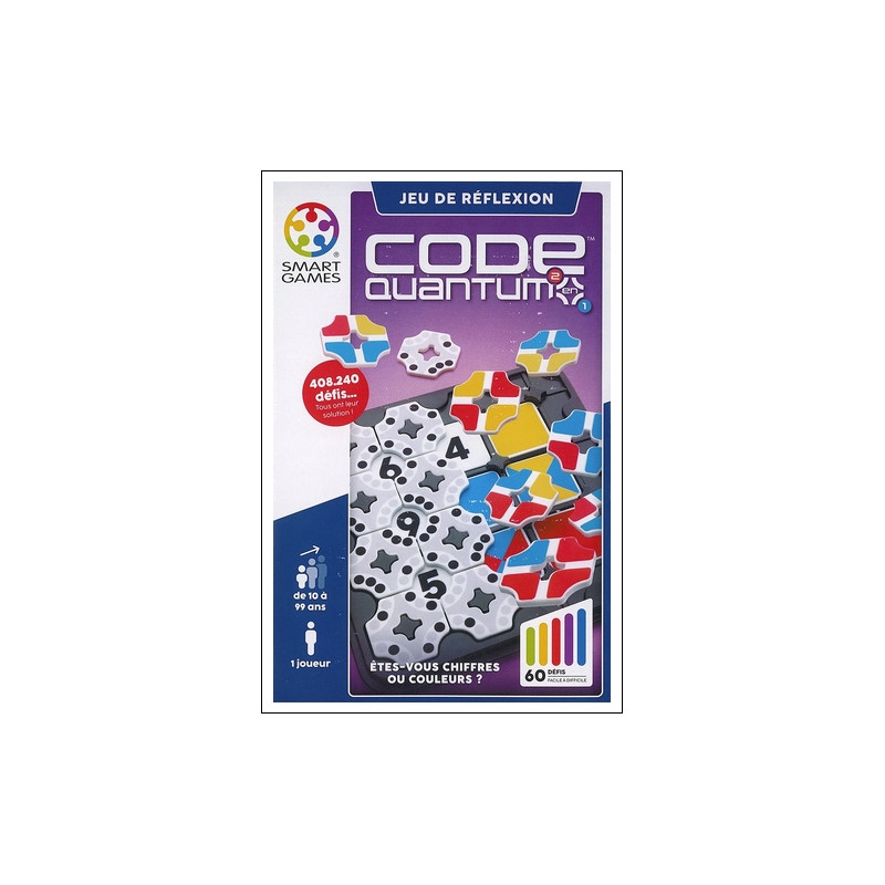 Code Quantum est le jeu de réflexion 2-en-1 par excellence ! D'un côté, apprenez à maitriser le placement des couleurs et de l'autre, placez les points noirs pour résoudre des défis abstraits.
