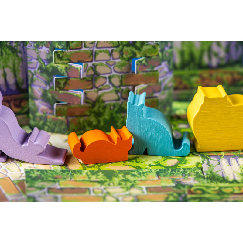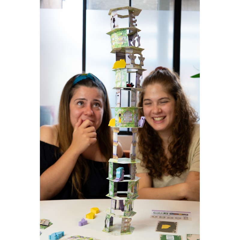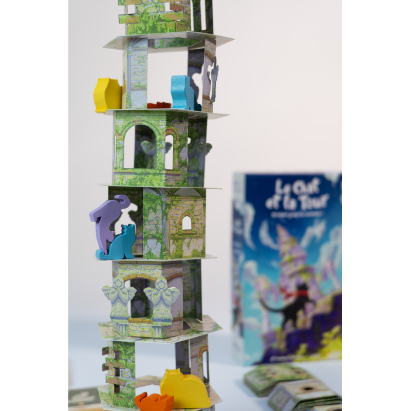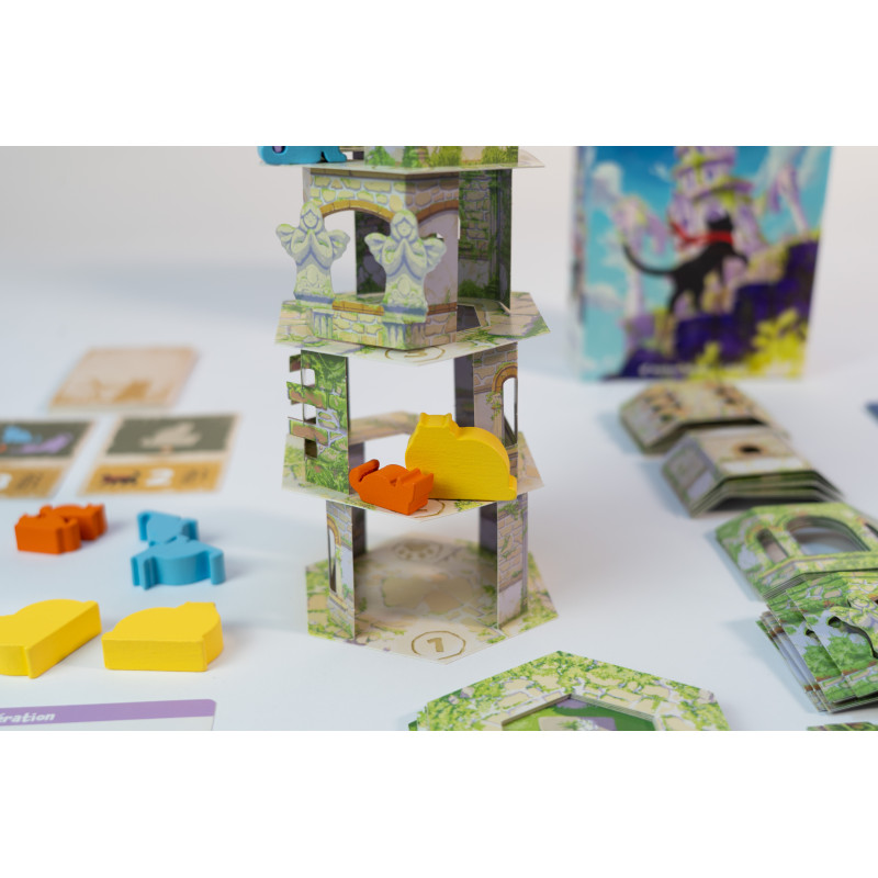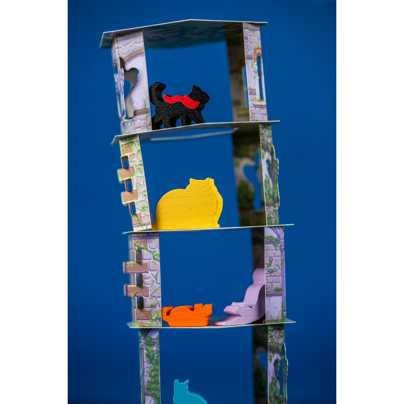 En coopération, construisez la tour à l’aide de tuiles Mur et Étage, et accomplissez des missions pour aider Neko, le chat noir, à atteindre le sommet de la tour. Si Neko parvient au 10e, 13e, 15e, 17e ou 20e étage de la tour, les joueurs remportent la partie !