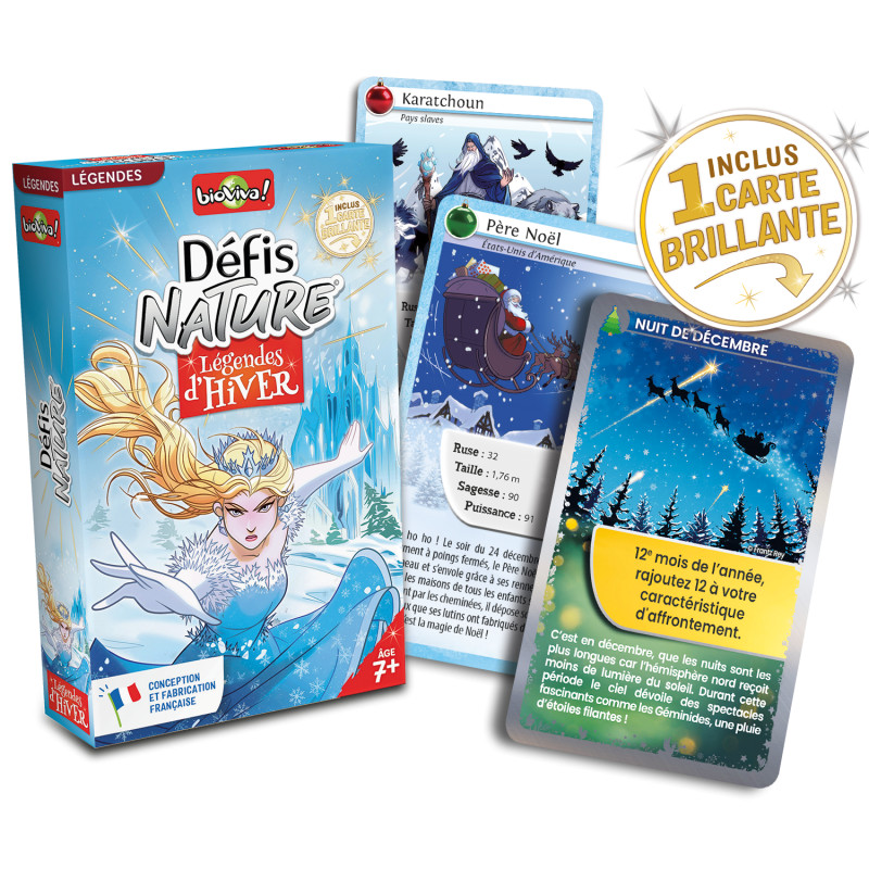 Défis Nature - Légendes d'hiver vous invite à découvrir les personnages et créatures légendaires qui peuplent notre imaginaire lors des longues nuits d’hiver. Au travers de cartes superbement illustrées, pariez sur leurs points forts pour gagner la bataille ! Alors, prêts à relever le défi ?