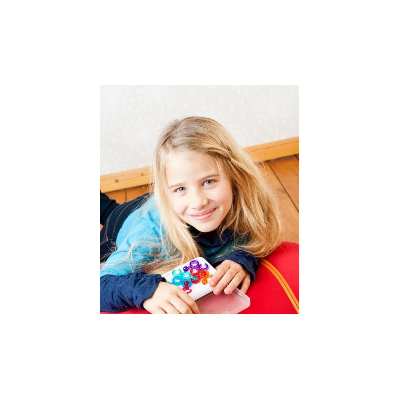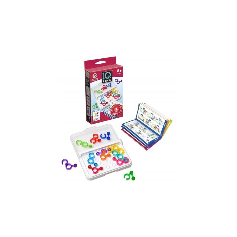 Soyez astucieux et placez toutes les pièces du puzzle sur le plateau de jeu. Mais attention ! Il y a 36 pièces du puzzle et seulement 24 places sur le plateau ! Les anneaux ouverts et les petites boules de différentes pièces peuvent être placés au même endroit. Mais uniquement si vous les reliez correctement. IQ-Link est un jeu de voyage compact et le jeu de réflexion le plus complexe dans la série IQ de SmartGames. En outre, les pièces sont tout simplement fantastiques avec leurs couleurs transparentes. Contenu : 12 pièces colorées, plateau de jeu compact avec couvercle transparent, livret contenant 120 missions.