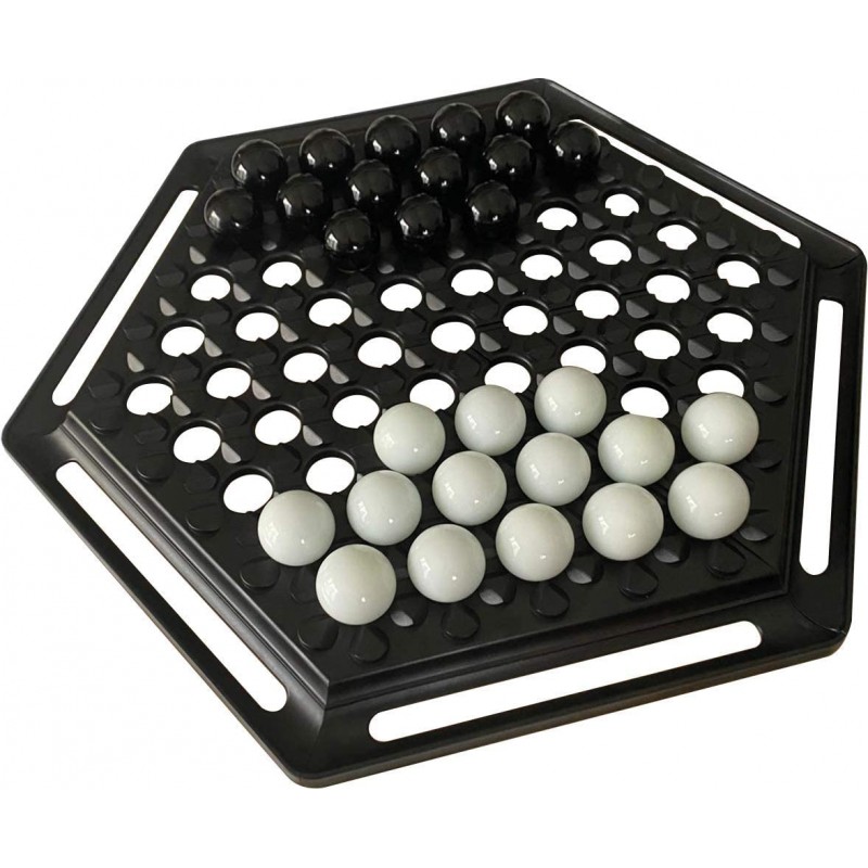 Éjectez six billes appartenant à votre adversaire d’un plateau hexagonal en les poussant avec les vôtres.