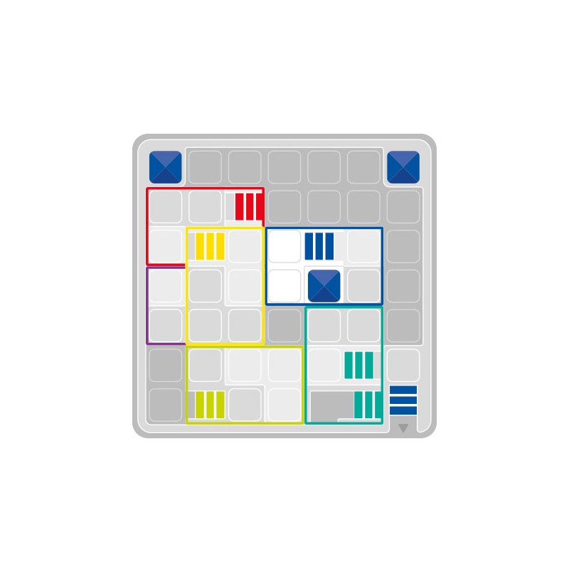 contenu : Un plan de jeu, une haute tour, cinq quartiers avec des escaliers de couleurs différentes bleu, un livret de 60 défis avec les solutions.