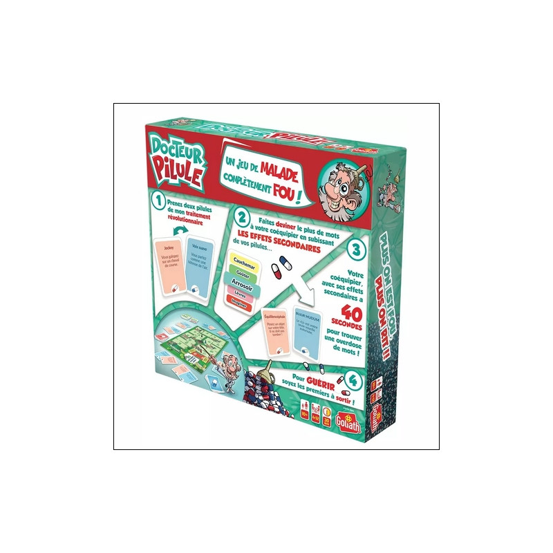 Docteur Pilule, Goliath : Faites deviner un maximum de mots à votre équipe malgré les effets secondaires délirants de la rigolo-thérapie du Docteur Pilule !