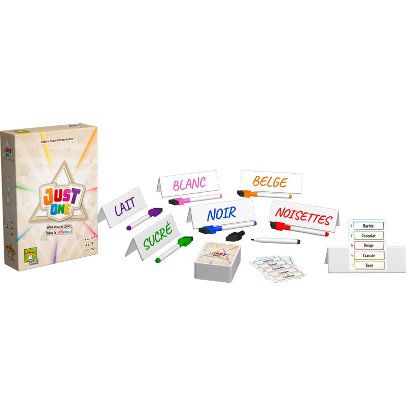 Un joueur doit deviner un mot sur une carte. Pour ce faire, les autres joueurs vont écrire un indice sur leur chevalet. Celui qui devine garde les yeux fermés pendant que les autres comparent leurs mots. Si deux mots sont identiques, on les efface !