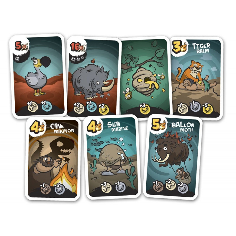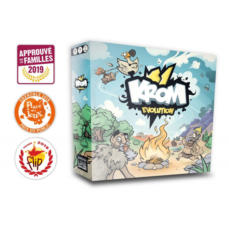 Krom est un jeu de société sur le thème de la préhistoire et ne se prend pas du tout au sérieux. Le but du jeu est de réaliser des évolutions abracadabrantesques pour marquer un maximum de points … d’évolution !