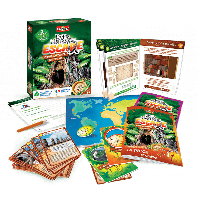 Chez Bioviva, nous prenons très à cœur le respect de l’environnement. C’est pourquoi, Défis Nature Escape - Exploration secrète a été conçu à Montpellier et fabriqué à St-Paul-Trois-Châteaux dans la Drôme, pour favoriser une production locale (moins de pollution).