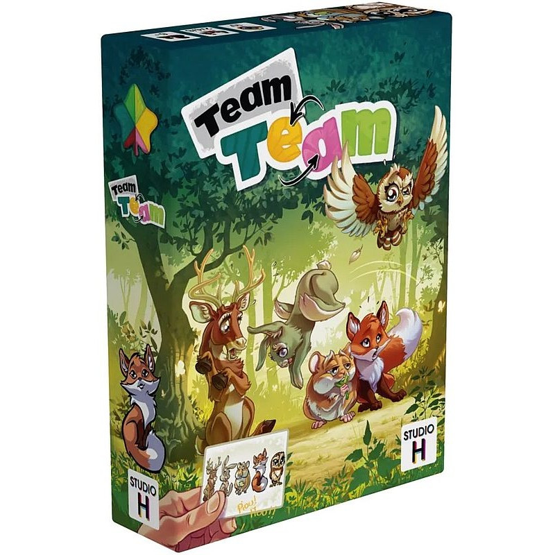 Team Team est un jeu de communication familial et délirant ! Avec votre partenaire, réordonnez les animaux correctement avant les autres équipes. Mais saurez-vous vous comprendre en n’utilisant que le son loufoque imposé pour le tour ?