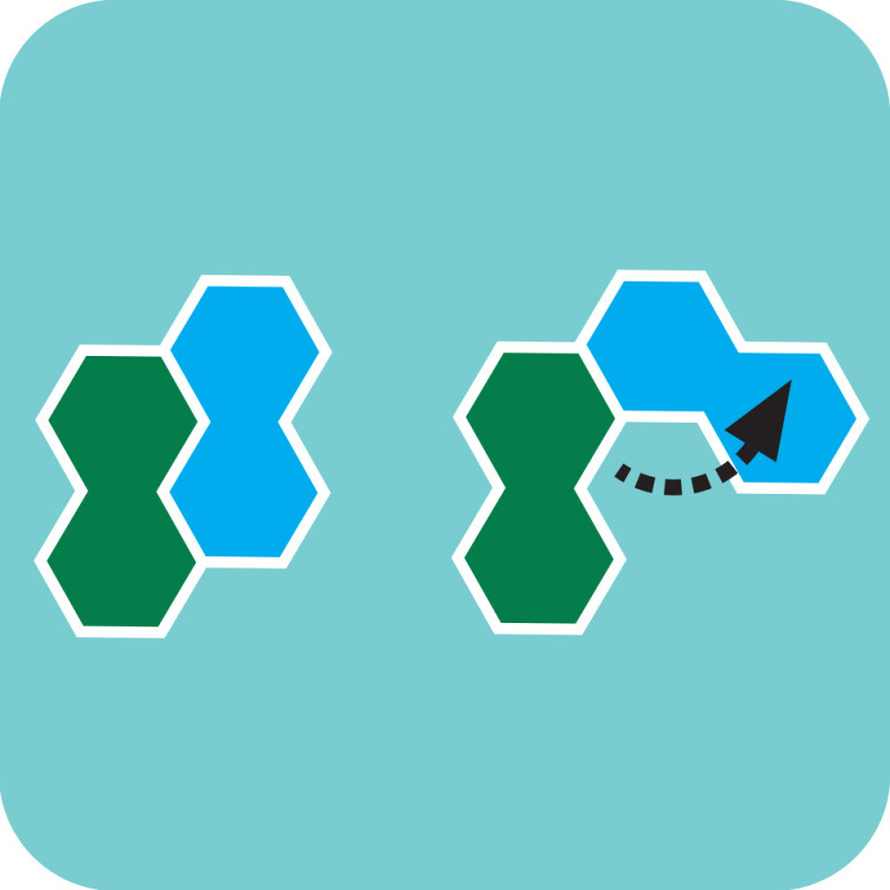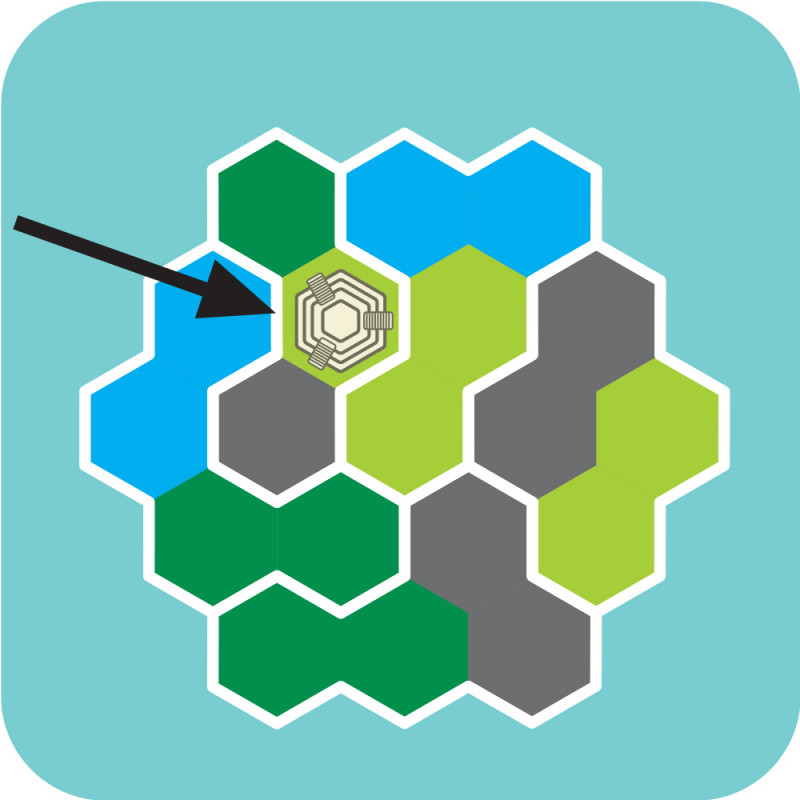 Disposez les quatre tuiles hexagonales à l’intérieur du plan de jeu de telle façon que la nature des terrains placés corresponde toujours à celle indiquée par le défi. Chaque tuile articulable propose quatre formes. Seule la tuile avec la Cité d’Or est figée.