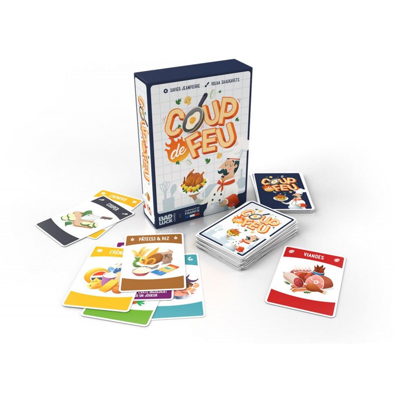 Dans "coup de feu", incarnez un cuisinier qui souhaite prouver aux autres "cuistots" de seconde zone, que son établissement et celui où l'on mange le mieux. Pour se faire, vous allez de voir vous mettre aux fourneaux pour cuisinier de savoureux plats, le plus rapidement possible. Chaque recette réalisée vous rapporte un nombre de points. Le premier cuisinier qui a 12 points remportera la partie. Il vous faudra alors rassembler les bons ingrédients, en cuire certains, en couper d'autres en espérant qu'un de vos adversaires ne réalise pas la recette que vous visiez avant vous.