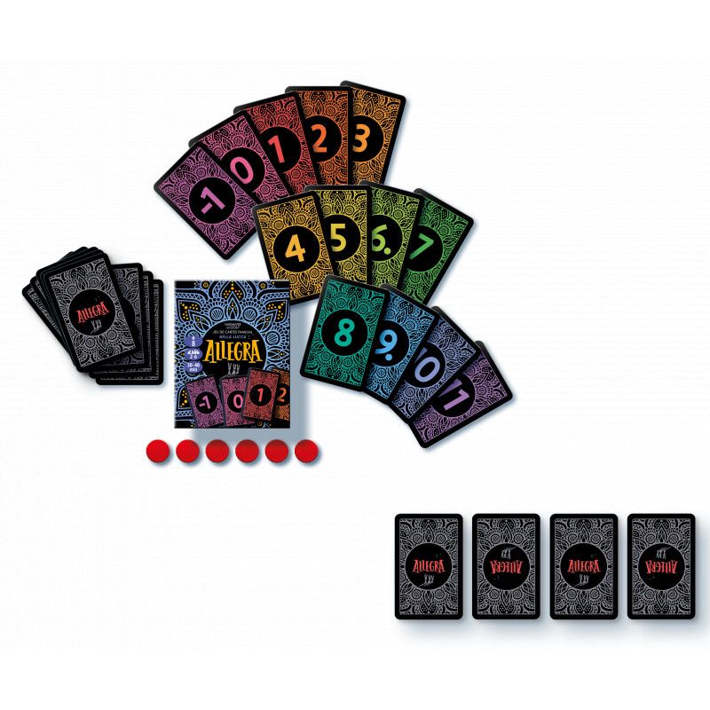 ALLEGRA est est variante semi-coopérative du jeu de cartes connu depuis longtemps sous le nom de "golf" dans le monde anglo-saxon. Jusqu'à récemment, on utilisait des cartes de poker pour y jouer.
