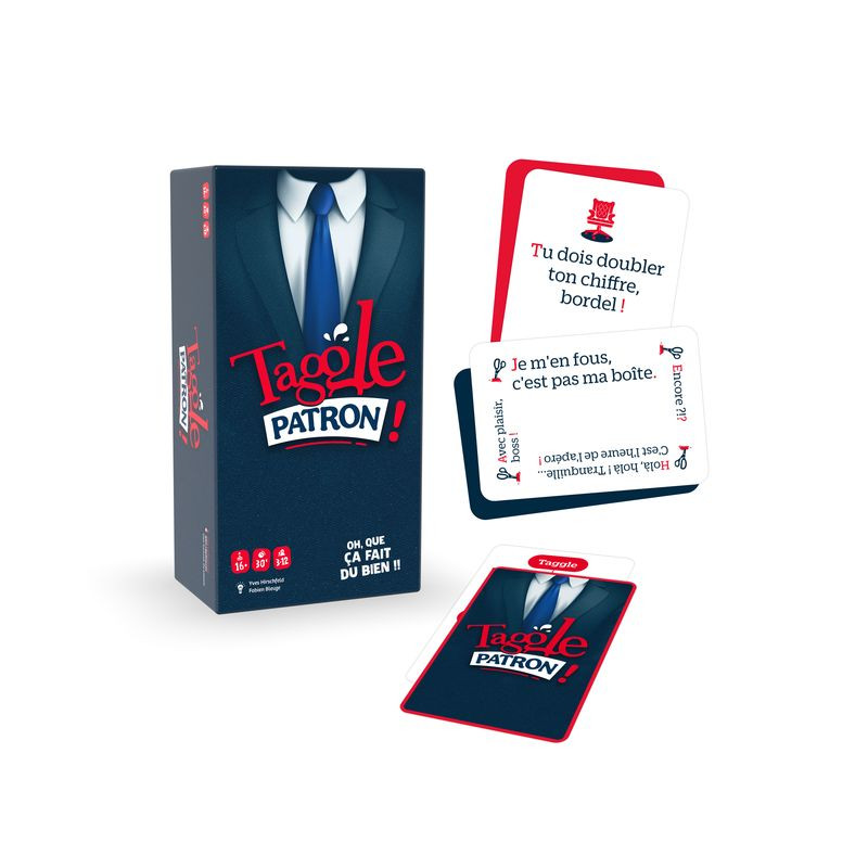 Dans Taggle Patron, dès que le patron te lit une réflexion, tacle-le avec ta meilleure réplique ! Si c'est drôle, bravo... sinon, le " Taggle " sera pour toi ! Un jeu d'ambiance hilarant validé par Josiane de la compta !