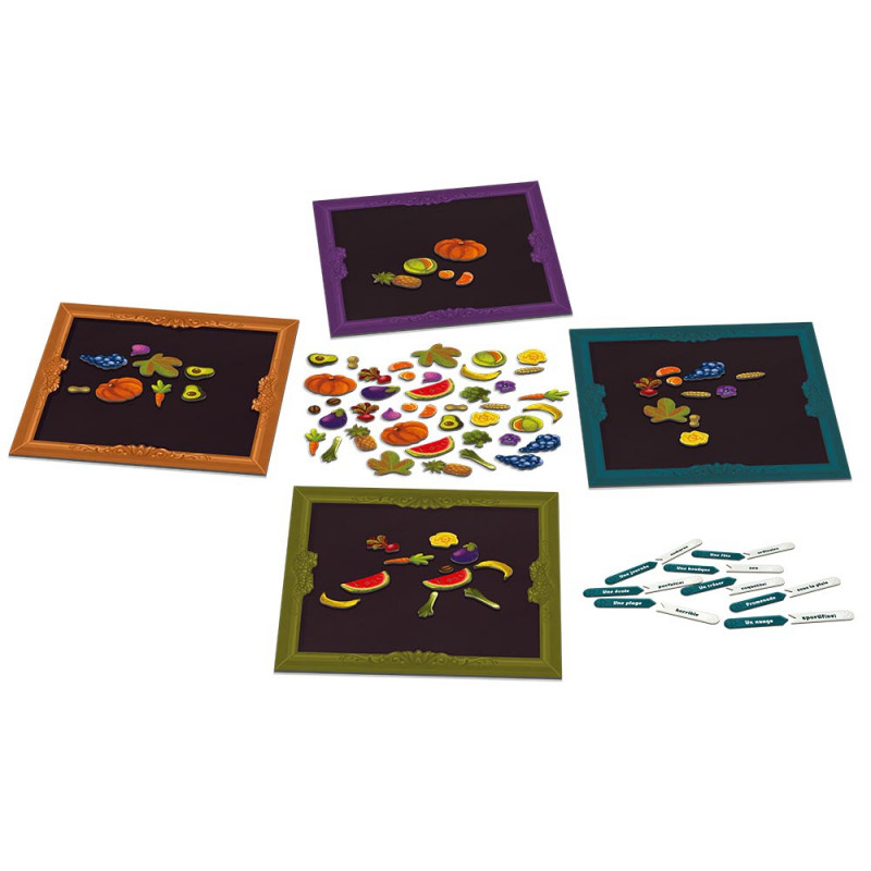 À la manière d'Arcimboldo, s'inspire des tableaux de Giuseppe Arcimboldo. Les joueurs vont utiliser des fruits, légumes, céréales et fleurs magnétiques pour créer des œuvres. Ici, pas de stress d'exécution, place à la création !