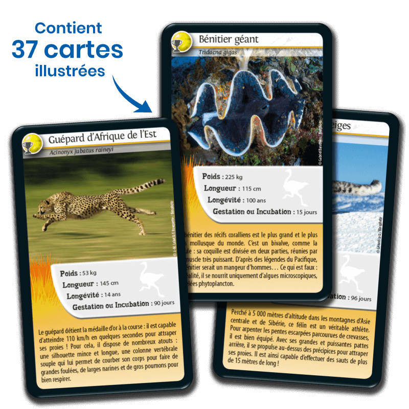 Le principe de Défis Nature est simple : les enfants de 7 ans et + parient sur les points forts des monuments. Le joueur qui possède la plus forte caractéristique remporte les cartes des autres joueurs. Le premier à collecter toutes les cartes du jeu gagne la partie.