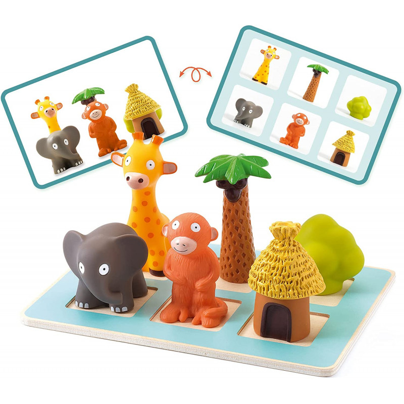 Pour reproduire la photo, l'enfant doit utiliser sa logique pour placer correctement les figurines sur le plateau. Un jeu simple et amusant pour apprendre à se repérer dans l'espace. Solutions au dos des cartes.