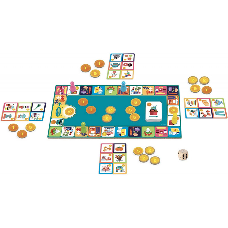 Découvrez le jeu P'tit Market de la collection Cool School de Djeco, un jeu de parcours et d'achat pour apprendre à gérer son argent, à rendre la monnaie et à soustraire des remises. Un jeu familial pour les enfants de 5 à 10 ans.