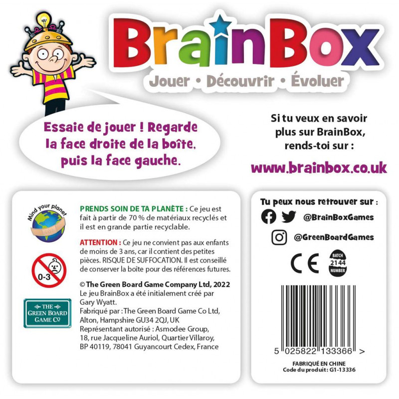 BrainBox, c’est une série de jeux de mémoire, organisés autour d’un thème spécifique. Chaque boîte contient 55 cartes question sur carton épais, un dé et un sablier.