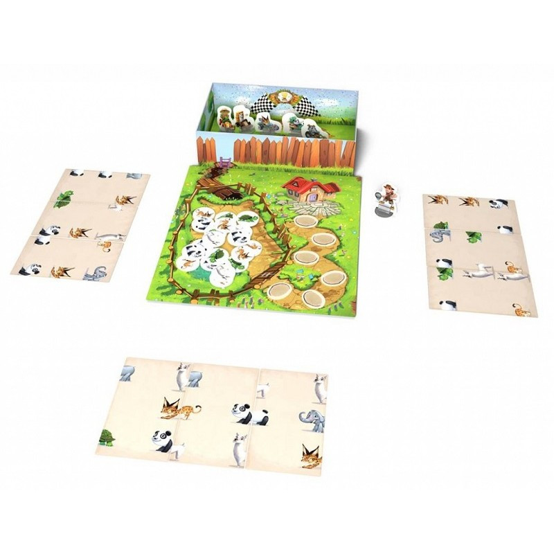 Les animaux s’ennuient dans le zoo et ont envie de prendre la poudre d’escampette. Coopérez, et aidez-les à s’évader ! Chaque joueur pioche trois cartes et tente de reconstituer astucieusement des silhouettes d’animaux. Observez bien les silhouettes : plus vous en associez, plus vous en libérez. Mais attention : le gardien n’est pas loin et se rapproche un peu plus à chaque tour. Combien d’animaux seront sortis du zoo avant son arrivée ?