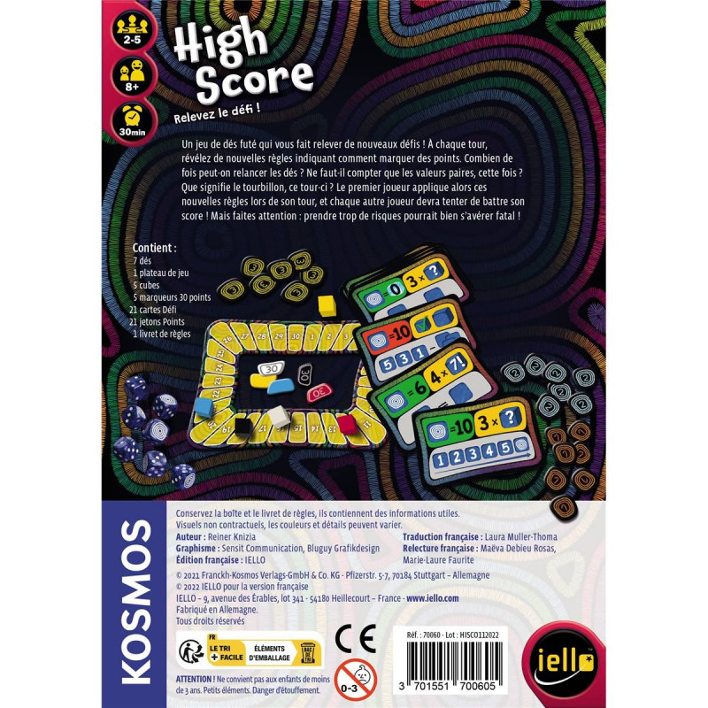 • Contenu : 1 plateau de jeu, 5 cubes, 5 marqueurs 30 points, 7 dés, 21 cartes Défi, 21 jetons Points (7x Or, 7x Argent et 7x Bronze) et 1 livret de règles