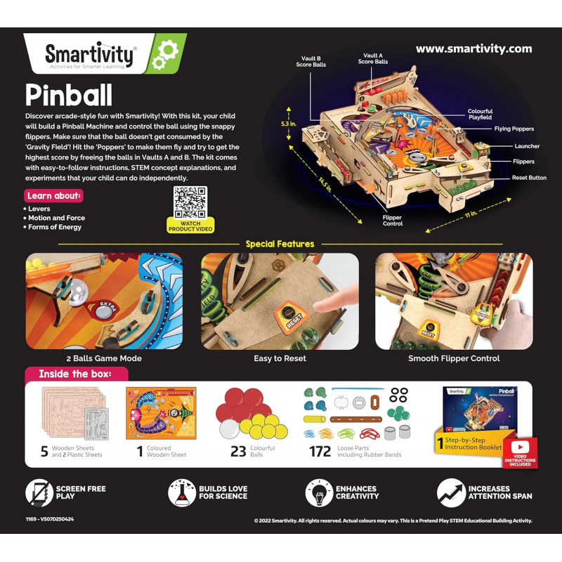 Construisez votre propre Flipper mécanique en suivant pas à pas les instructions du livret. Une fois votre Flipper construit, appuyez sur le lanceur pour lancer la balle sur le terrain de jeu et actionnez les flippers pour frapper la balle et marquer un maximum de points. Vos amis arriveront-ils à surpasser votre high-score ? Découvrez les principes de levier, de transfert d'énergie et de quantité de mouvement.